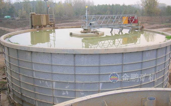 礦漿由給礦筒給入,自由沉降于耙子區的礦漿受刮板的壓力進一步濃縮,由耙子逐漸刮向池子中心,由排礦口靠重力排入下一層池子?清水經分配箱進入最下層對物料進行最后的洗滌,最下層的溢流返回分配箱進入第二層對物料進行洗滌,第二層的溢流返回分配箱進入第一層對物料進行洗滌,第一層的溢流經溢流堰排出,經三次洗滌的物料經底部排出。