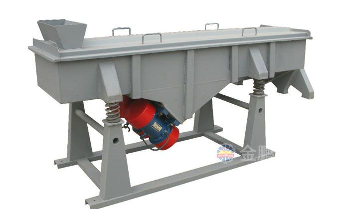 直線振動篩采用雙振動電機驅動,當兩臺振動電機做同步、反向旋轉時,其 偏心塊所產生的激振力在橫向的激振力相互抵消,在縱向的激 振合力傳遞到整個篩面上,因此篩機的運動軌跡為一直線。其 激振力方向相對篩面有一傾角,在激振力和物料自重力的合力作用下,物料在篩面上被拋起跳躍式向前作直線運動,從而達 到對物料進行篩選和分級的目的。